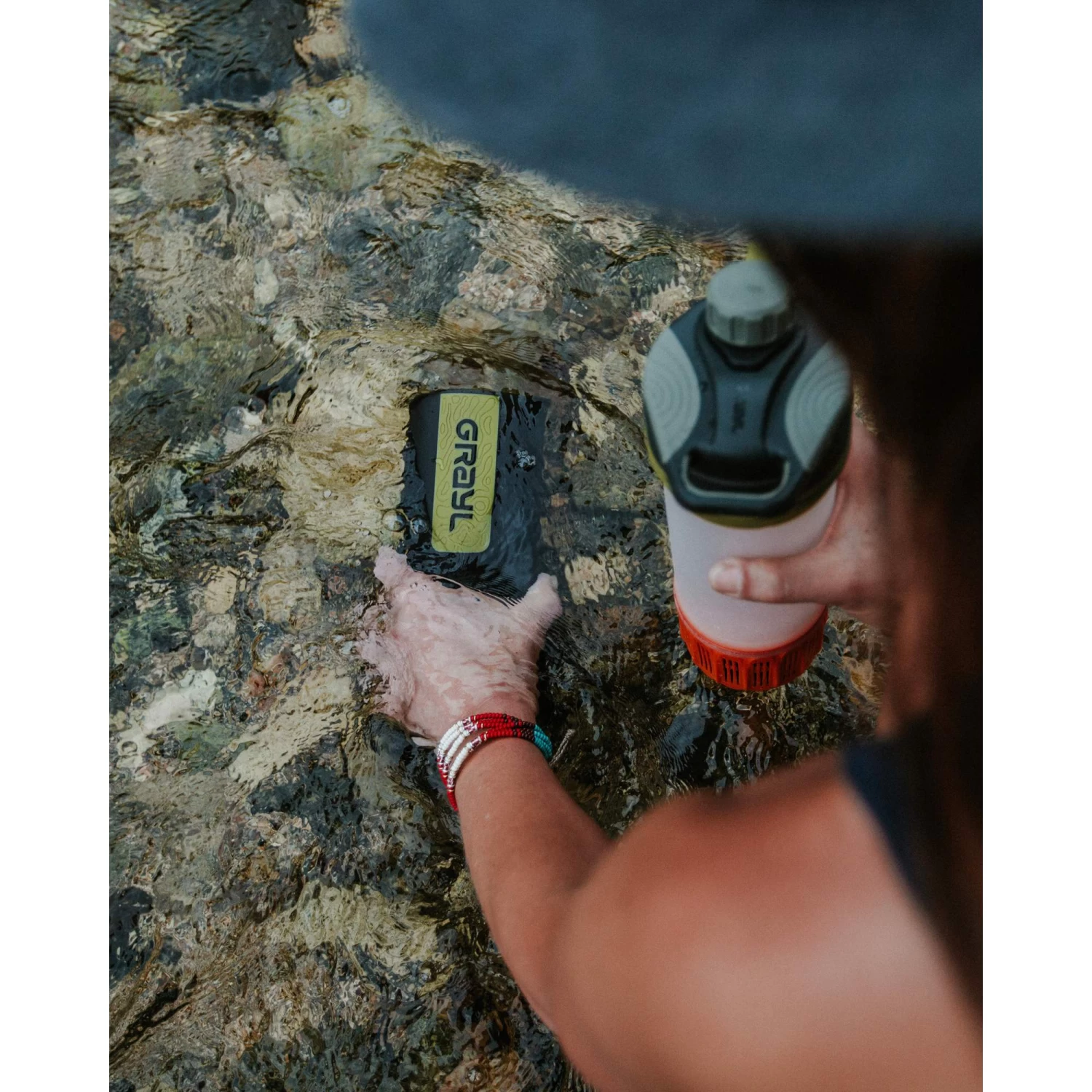 Die Geopress ist der schnellste portable Wasserfilter. Mit ihm zauberst du aus jedem Bachwasser sicheres Trinkwasser. Einfach mit dem Becher schöpfen, den Filtereinsatz einpressen und trinken.