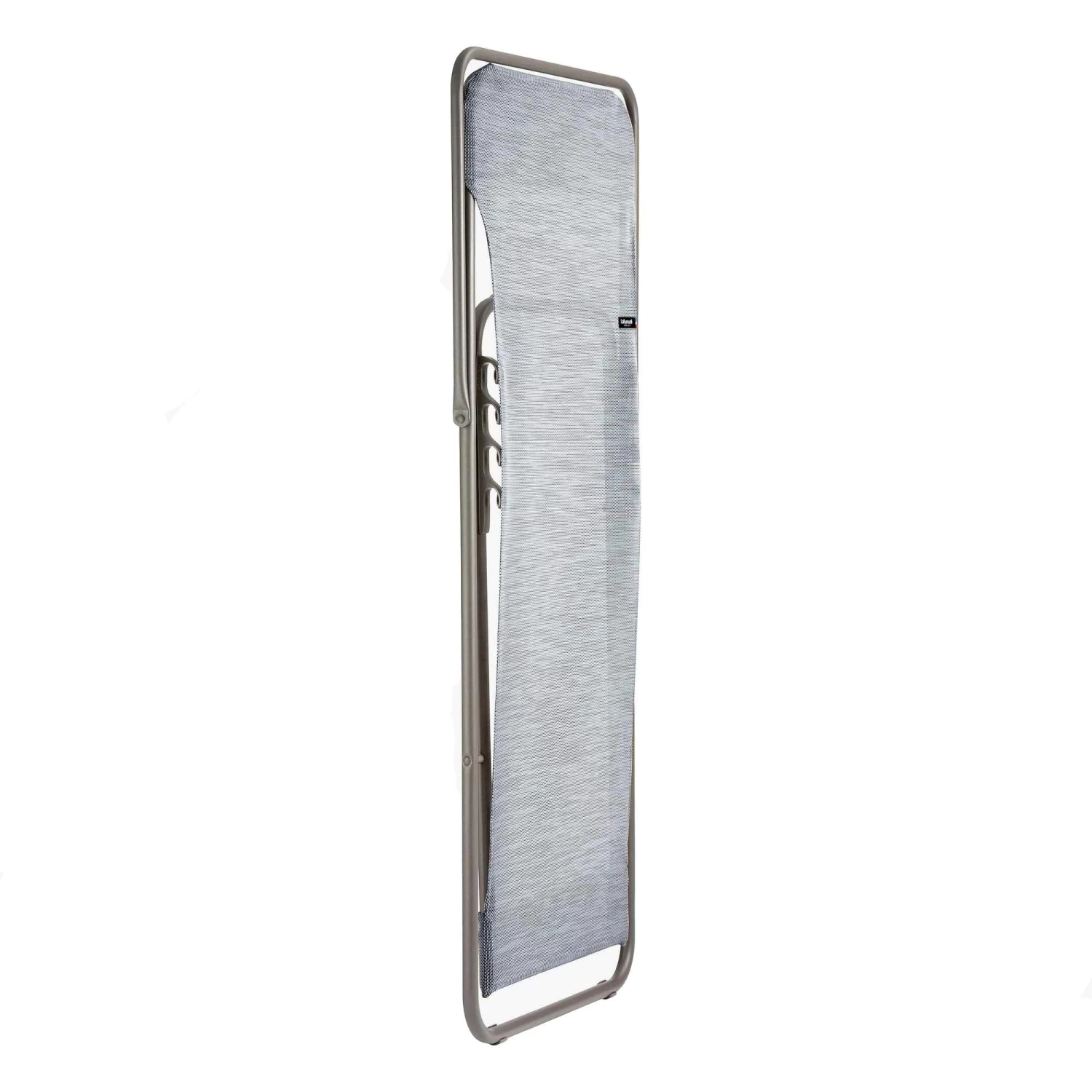 Der Liegestuhl ist sehr robust, das merkst du schon beim Hinsetzen. Das 20 mm dicke Stahlrohr ist lackiert und besitzt eine beschichtete Oberfläche. Der Batyline-Bezug ist wasserfest, leicht zu trocknen und zu reinigen. Insgesamt hat der Transatube 2 eine hohe UV-Beständigkeit. Der Stuhl lässt sich bemerkenswert flach zusammenklappen: nur noch 5 cm misst er dann. So kannst du ihn kompakt unterbringen und in allerlei Nischen lagern.