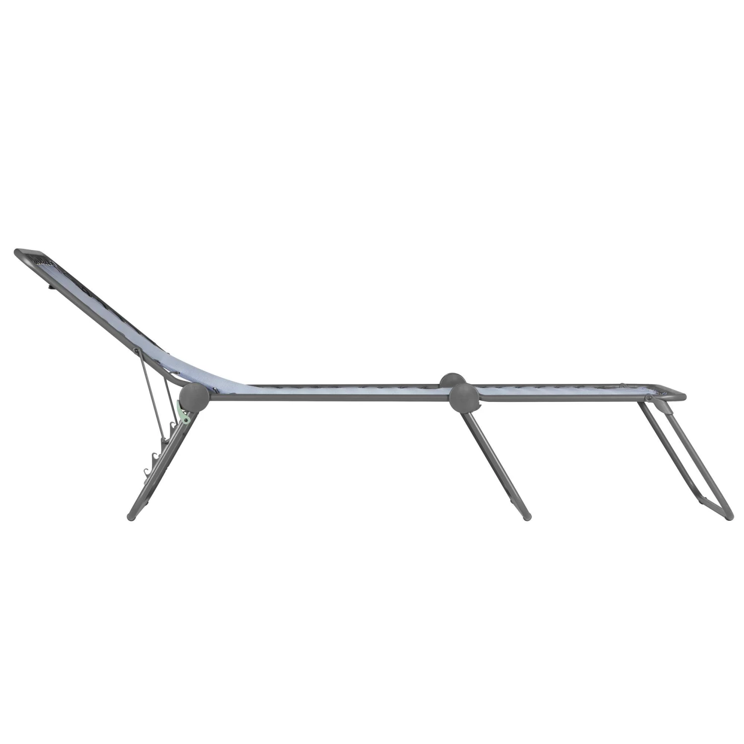 Der Bezug ist durch Gummischnüre elastisch aufgehängt und sorgt so für besonders hohen Komfort. Die Sonnenliege ist mit klassischer Klappfunktion ausgestattet. Die Liege ist widerstandsfähig und zusammengeklappt platzsparend.