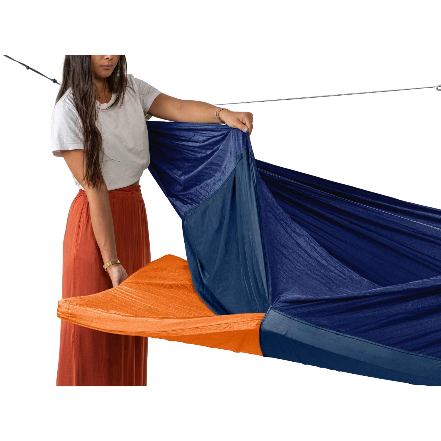 Das Fach für die Matratze ist dabei 70 cm breit und 200 cm lang. Es ist leicht diagonal angeordnet, sodass du in entsprechender Liegeposition die Isolation deiner Matte voll nutzen kannst. Natürlich kannst die Mat Hammock auch ganz ohne Matte verwenden – auch dann bietet sie dir viel Bequemlichkeit für erholsamen Schlaf oder eine „chillige“ Auszeit.